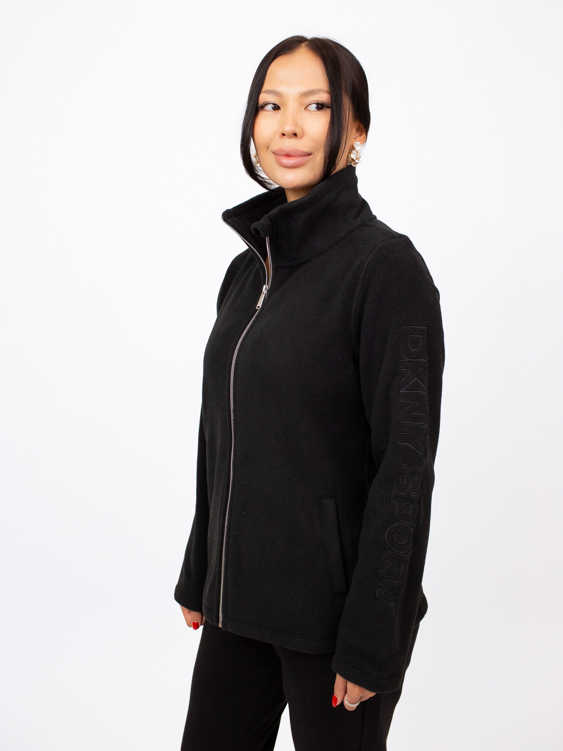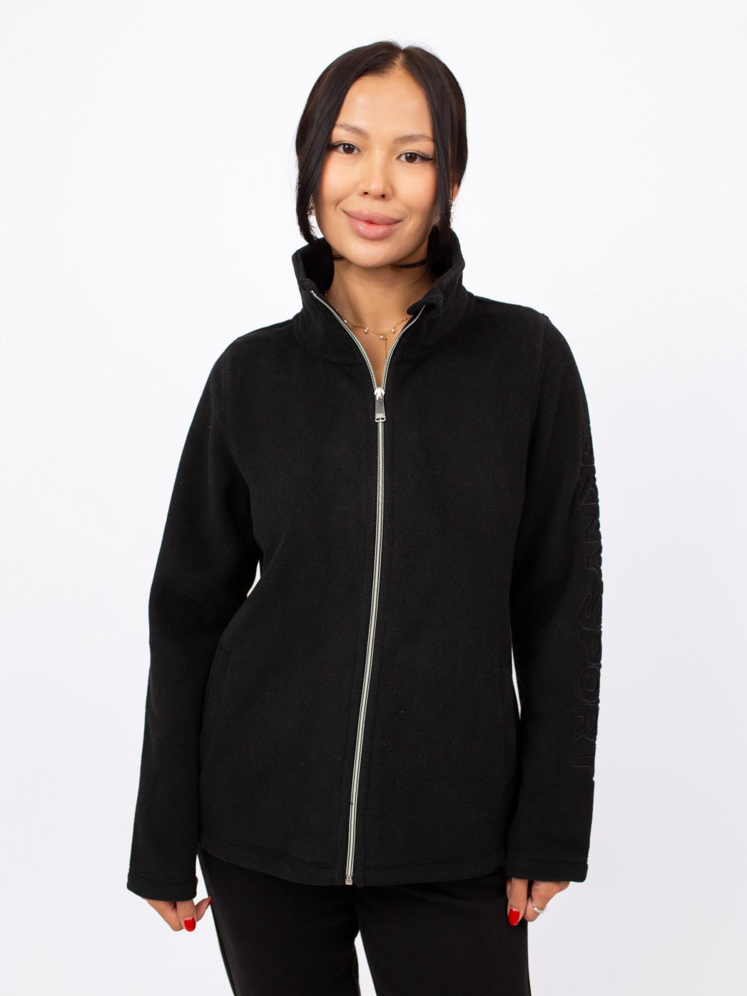Женская флисовая толстовка DKNY Sport черного цвета сочетает уют и спортивный стиль. Выполненная из плотного полиэстера, она надёжно сохраняет тепло. Модель застёгивается на молнию, оснащена высоким воротником, который можно носить отложным, и дополнена удобными боковыми карманами. Лаконичный логотип на рукаве подчёркивает фирменный стиль.