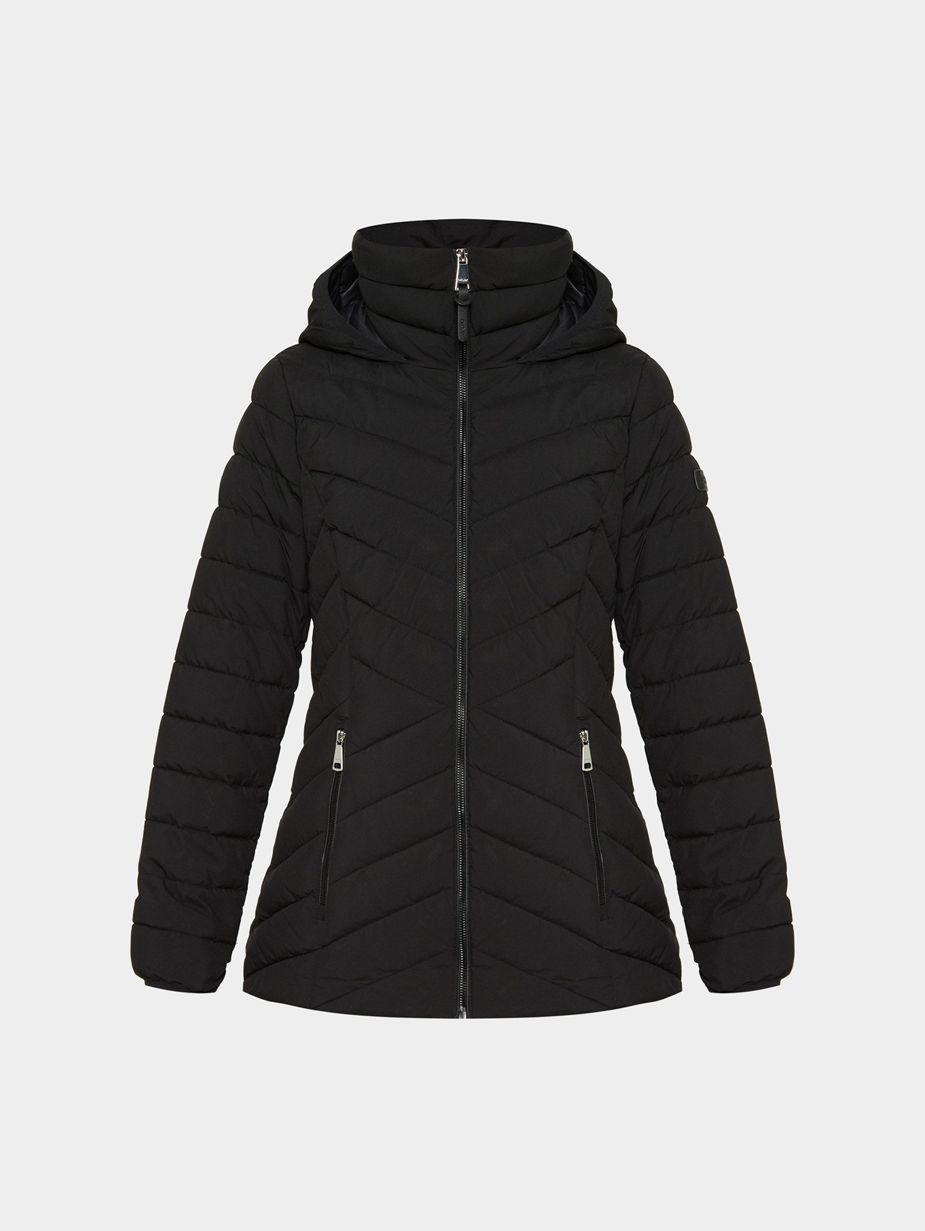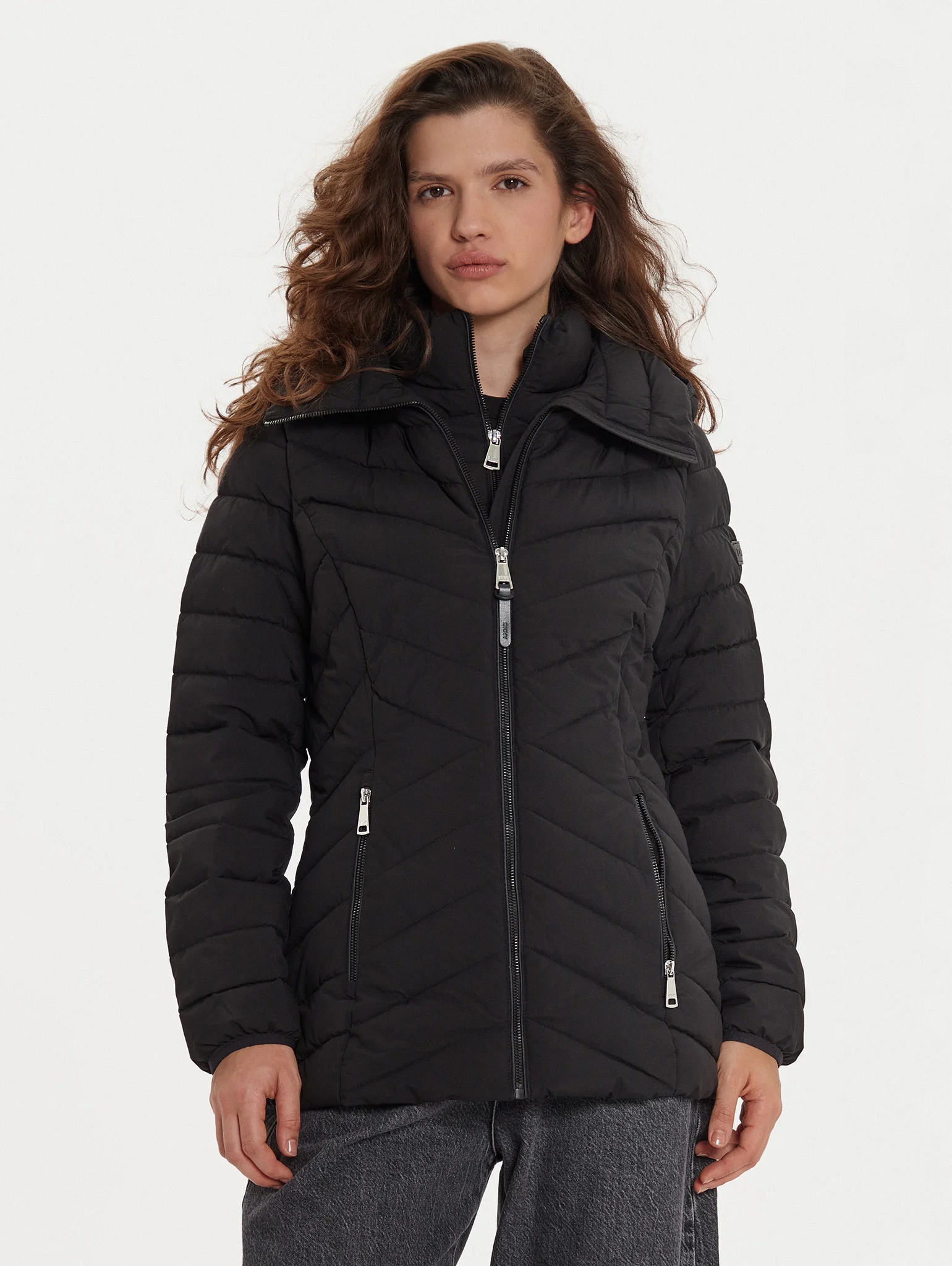 Женская зимняя куртка DKNY в классическом черном цвете — стильный выбор для холодного сезона. Модель с повышенной водонепроницаемостью идеально подходит для плохих погодных условий. Приталенный стёганый силуэт подчёркивает фигуру, синтетический утеплитель надёжно сохраняет тепло, а капюшон защищает от ветра и снега. Лаконичный дизайн делает модель универсальной для повседневных образов в динамичном городском ритме.