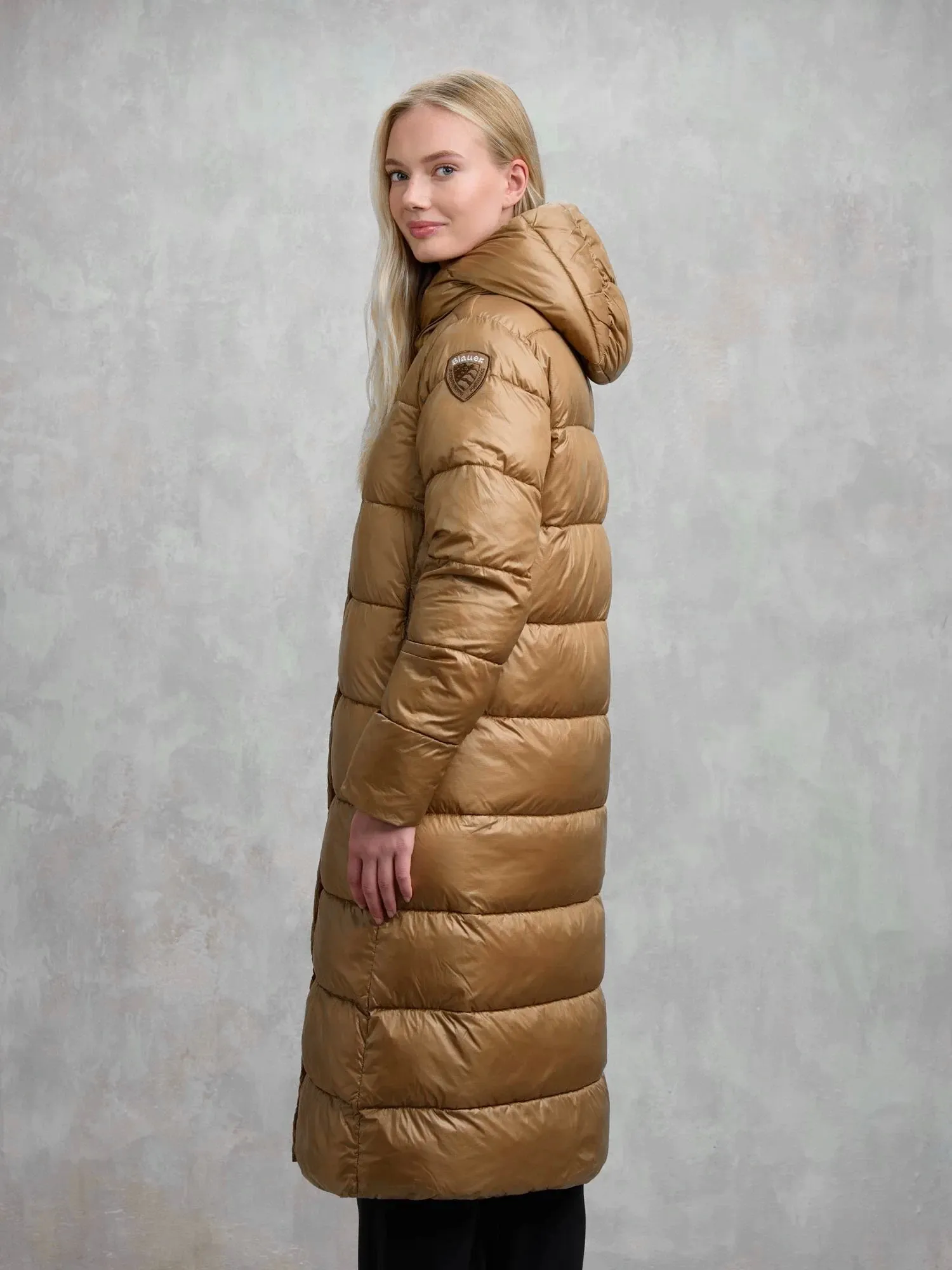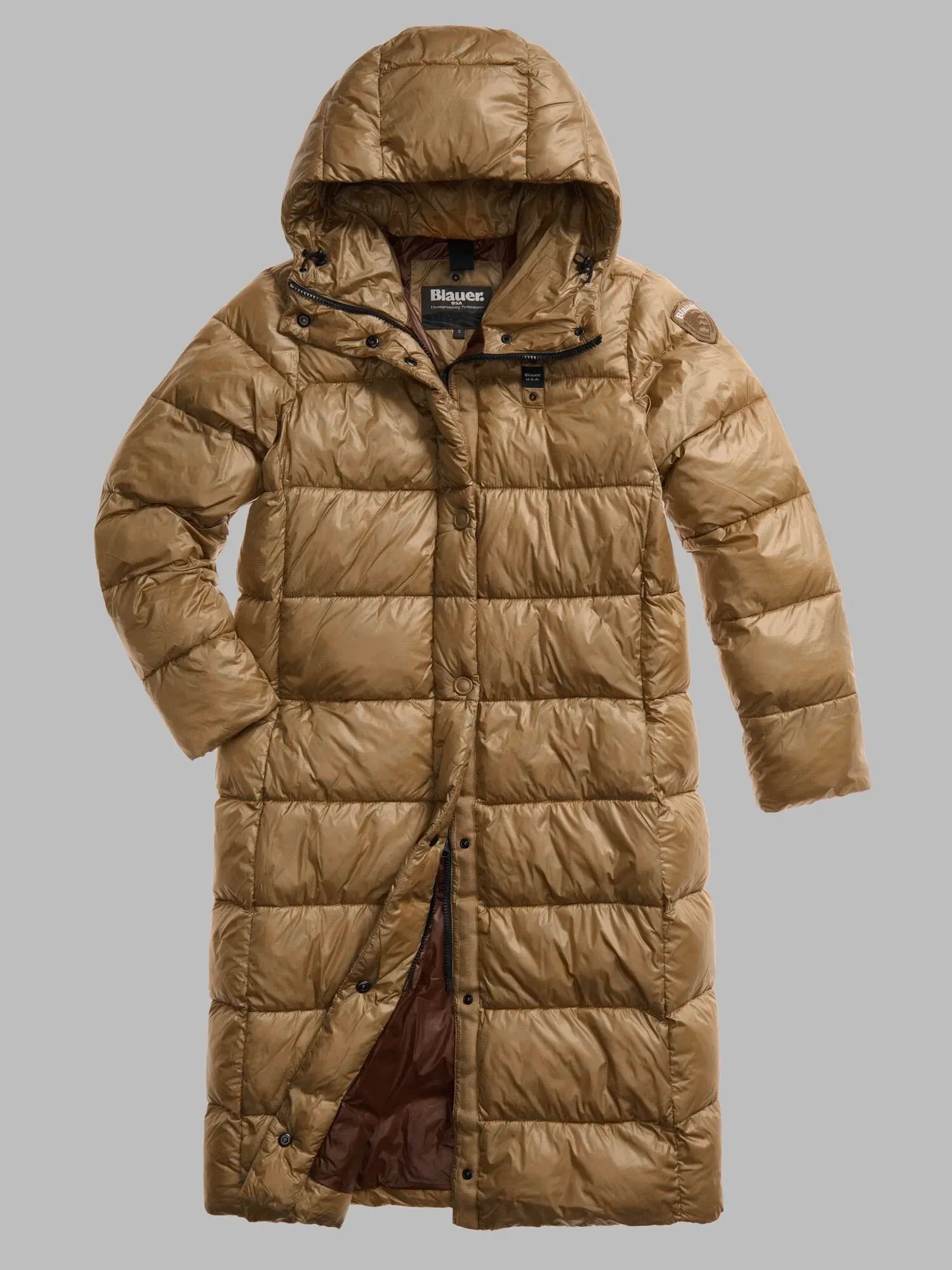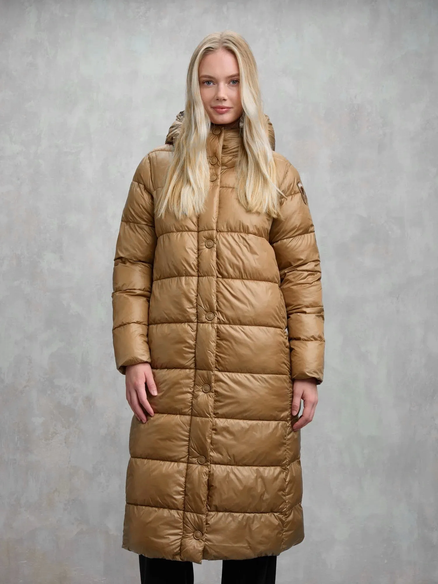 Длинная зимняя куртка с капюшоном BELLEVUE от BLAUER выполнена из прочного микрорип-нейлона светло-коричневого цвета с контрастной подкладкой. Утеплитель Sorona® Aura сохраняет тепло и лёгкость, а стёганый дизайн добавляет объёма. Модель оснащена потайной молнией с кнопками, карманами на молнии и внутренними карманами на липучках.