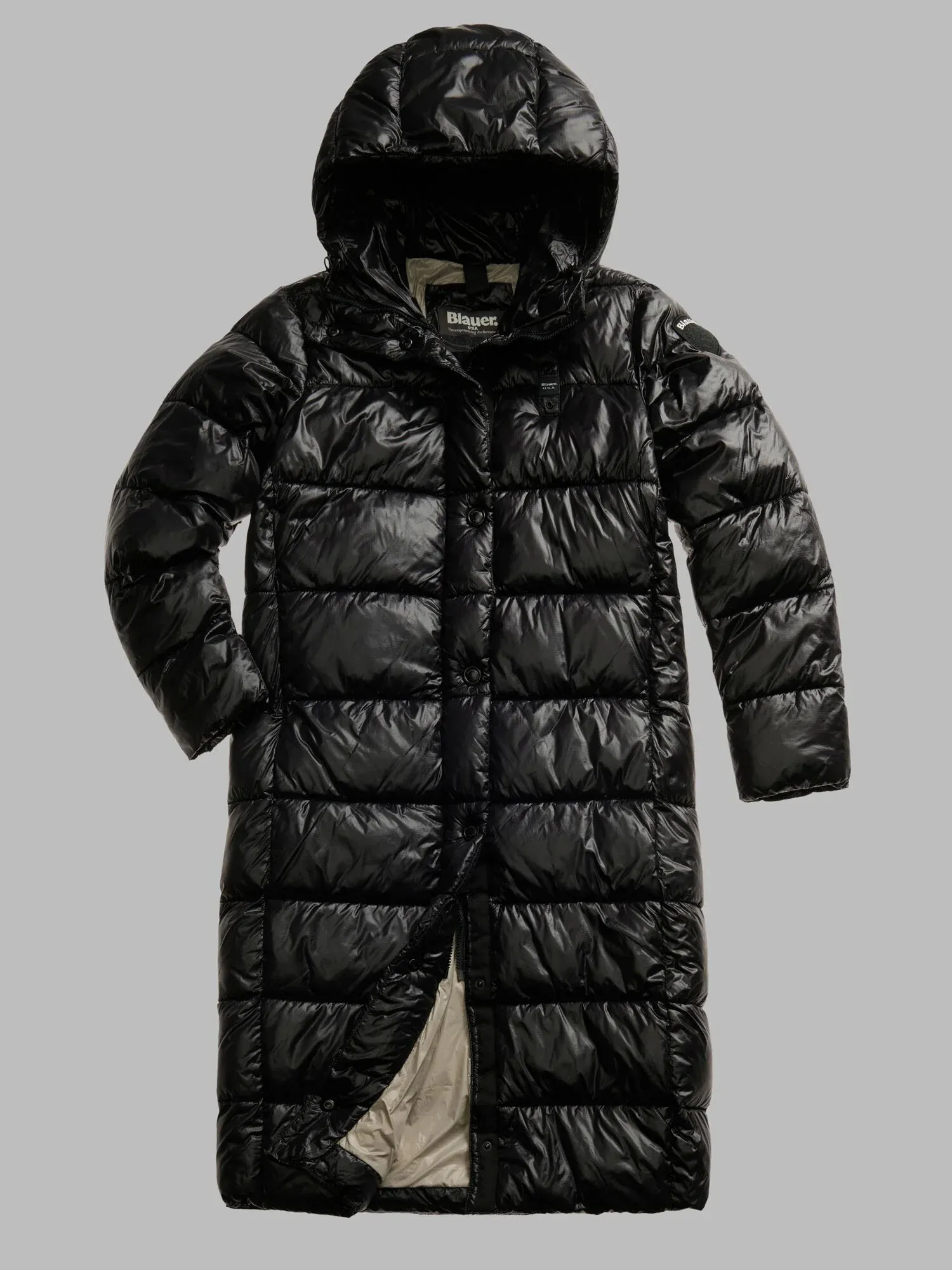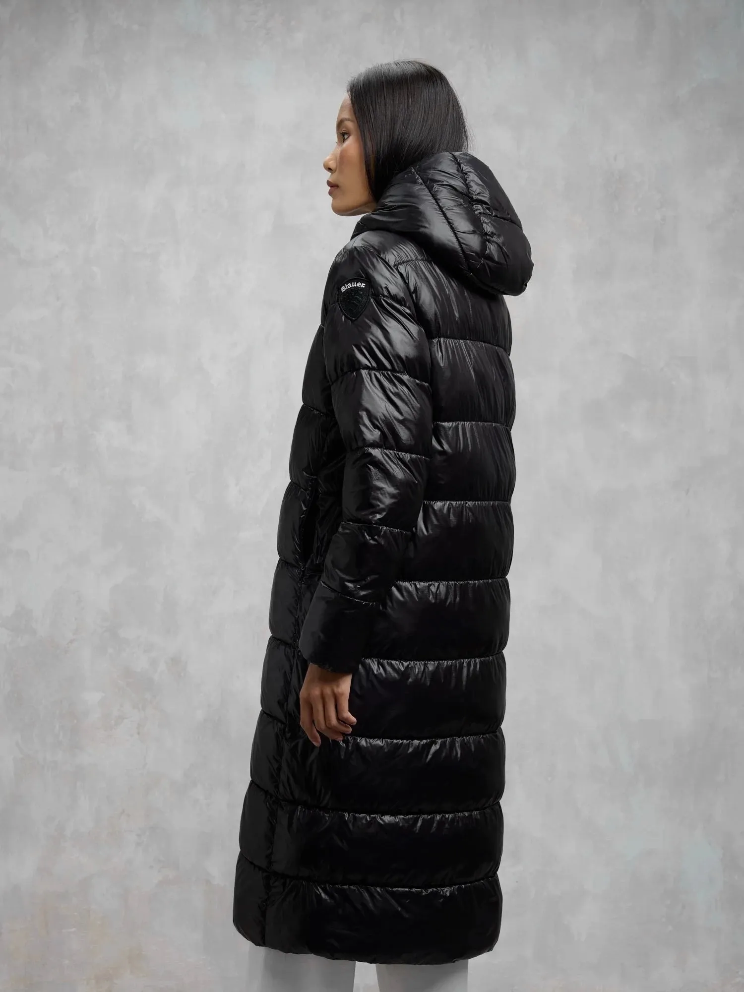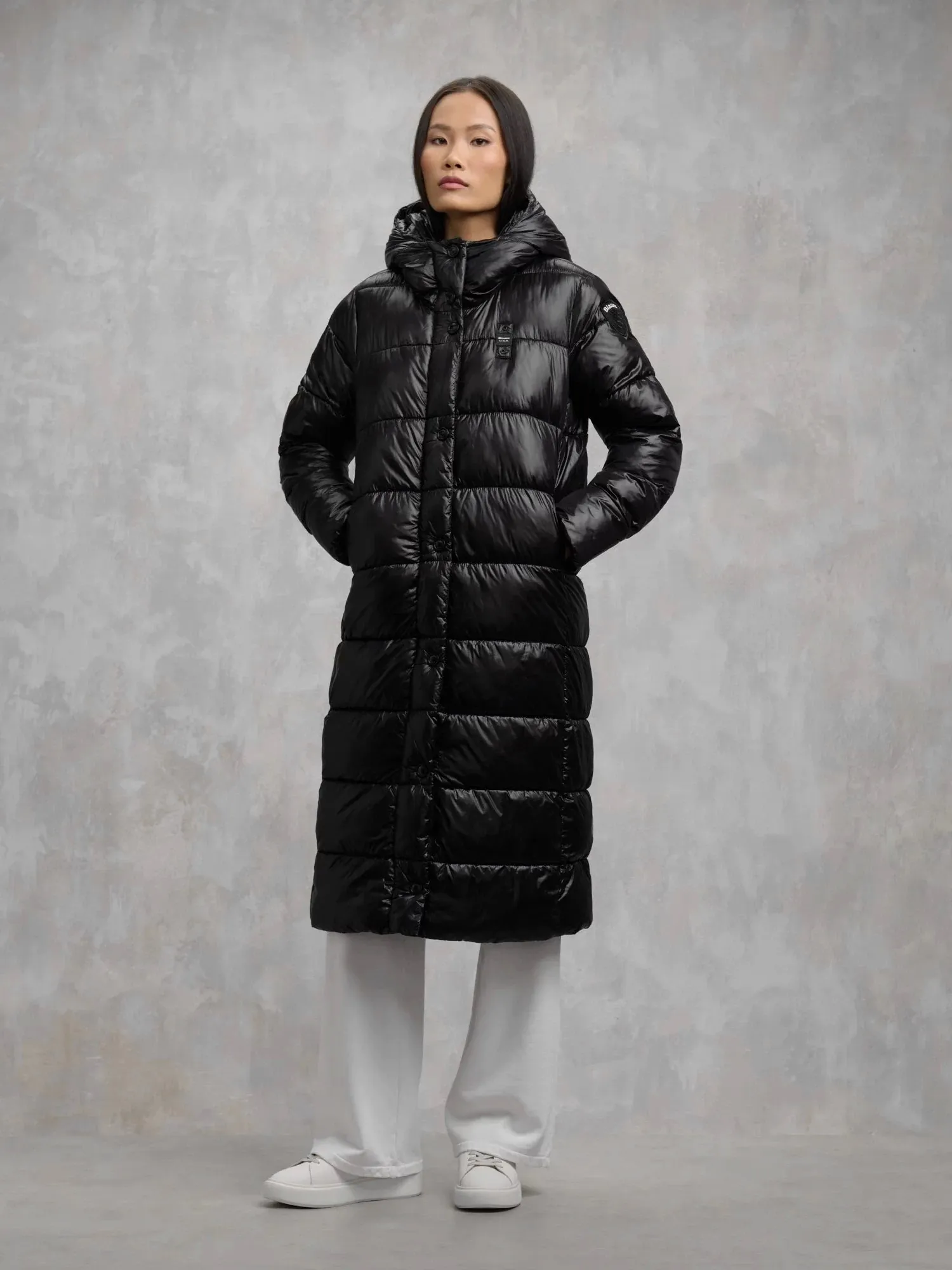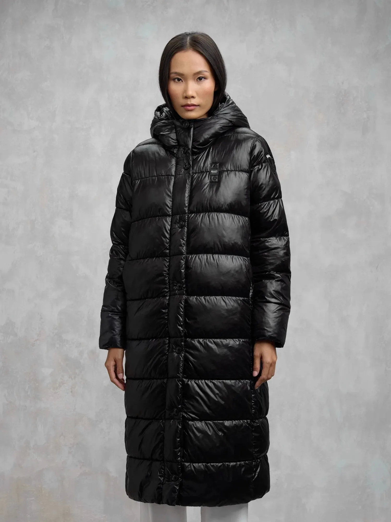 Длинная зимняя куртка с капюшоном BELLEVUE от BLAUER выполнена из прочного микрорип-нейлона черного цвета с контрастной подкладкой. Утеплитель Sorona® Aura сохраняет тепло и лёгкость, а стёганый дизайн добавляет объёма. Модель оснащена потайной молнией с кнопками, карманами на молнии и внутренними карманами на липучках.