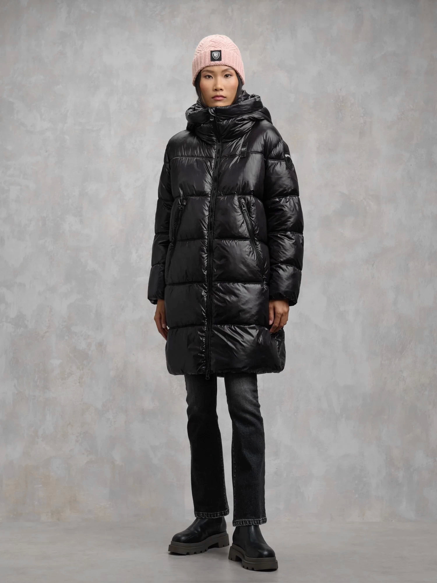 Длинная зимняя куртка с капюшоном ARMORY от BLAUER выполнена из прочного микрорип-нейлона чёрного цвета с контрастной подкладкой. Утеплитель Sorona® Aura сохраняет тепло и лёгкость, а стёганый дизайн придаёт объём. Модель застёгивается на молнию, оснащена внешними карманами на молнии и внутренними карманами на липучках. Двойные манжеты с внутренней резинкой обеспечивают дополнительный комфорт и защиту от холода.