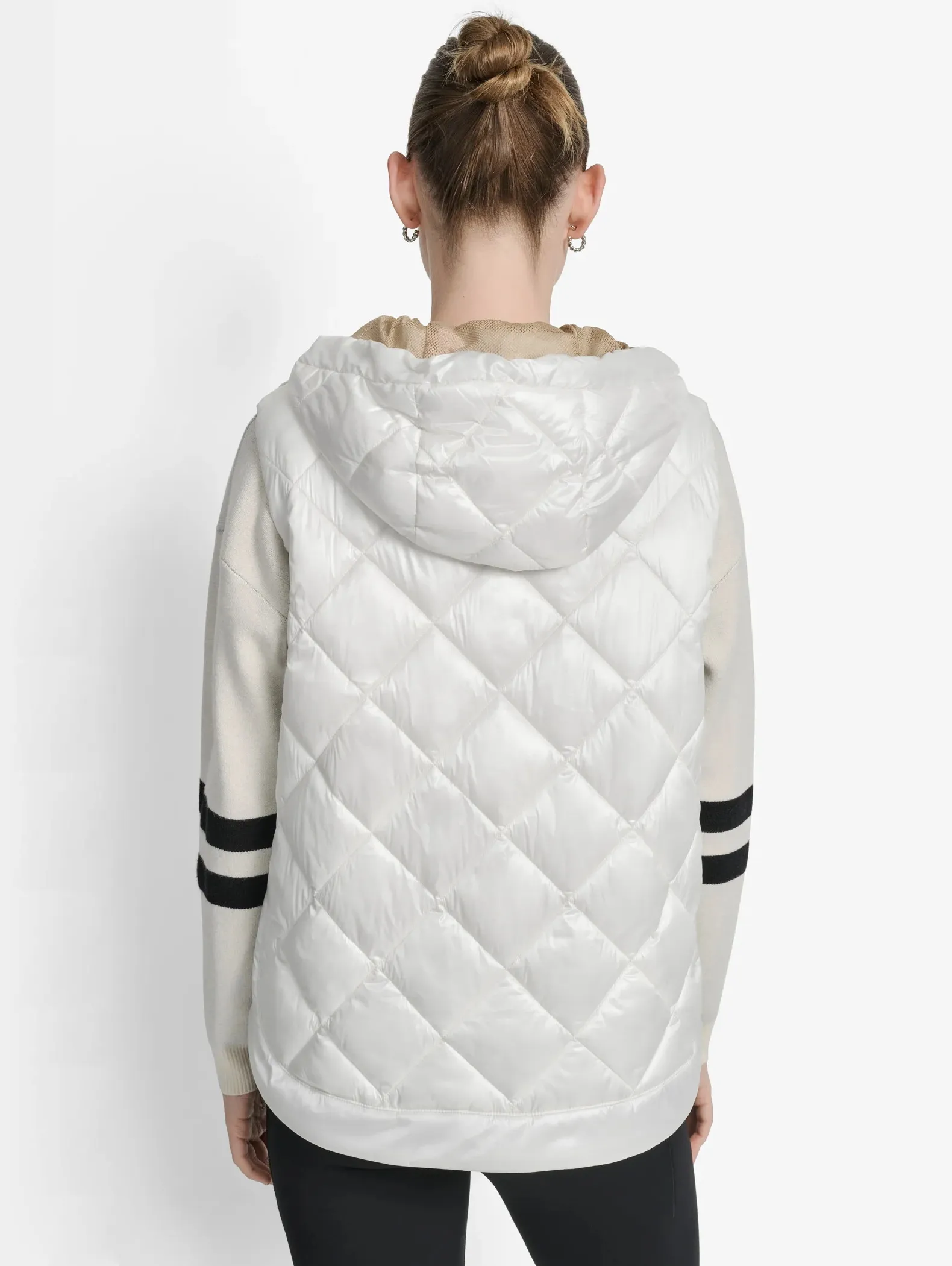 Женский утеплённый жилет DKNY — тёплая и стильная модель для прохладной погоды. Стёганый дизайн с синтетическим утеплителем и дышащей сетчатой подкладкой обеспечивает комфорт при низких температурах. Водоотталкивающая пропитка защищает от влаги. Высокий воротник и регулируемый капюшон усиливают защиту от холода и ветра. Боковые карманы на молнии с флисовой подкладкой сохраняют тепло.