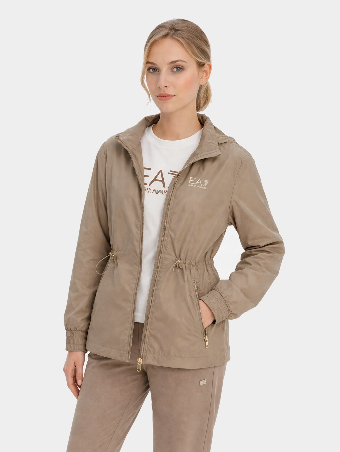 Ветровка застёгивается на молнию, имеет удобные боковые карманы и регулируемую кулиску на талии, позволяющую подчеркнуть силуэт. Эластичные манжеты обеспечивают комфортную посадку, а лаконичный дизайн с фирменным логотипом EA7 делает модель универсальной для повседневных и спортивных образов.