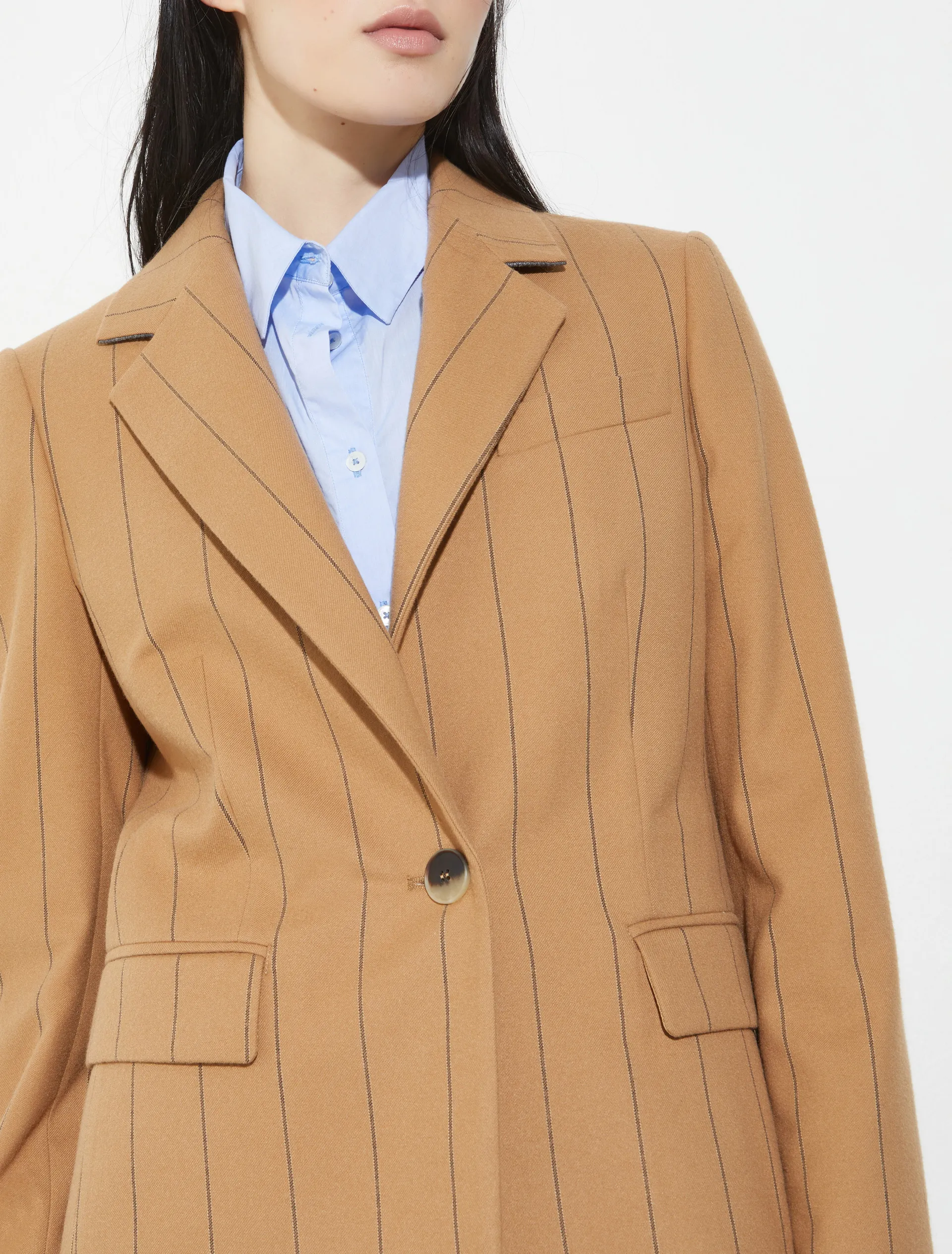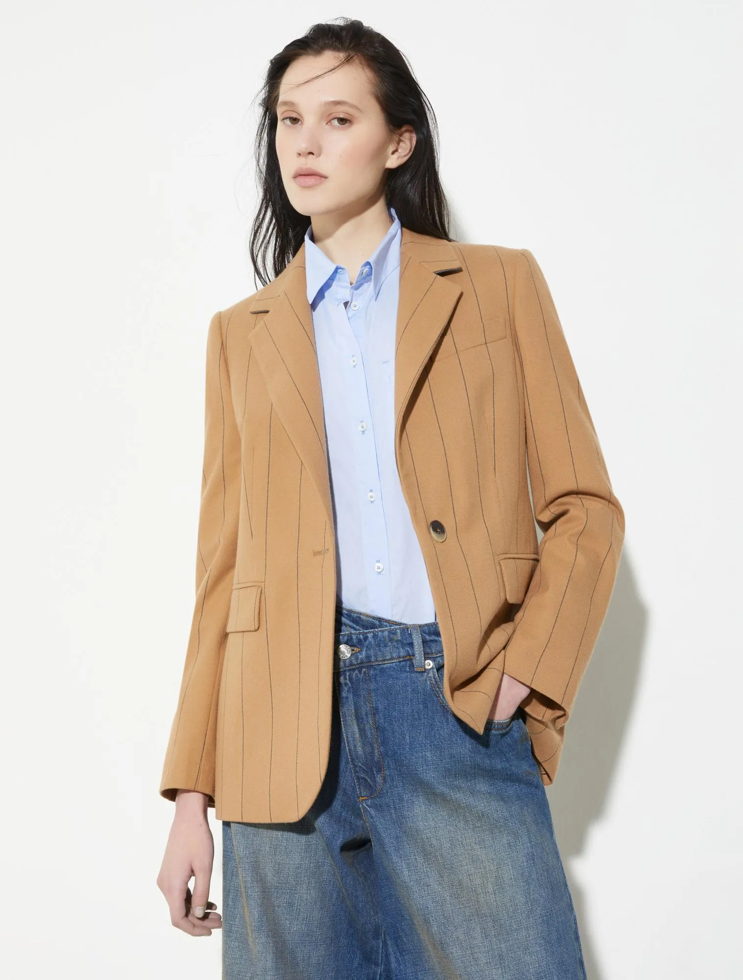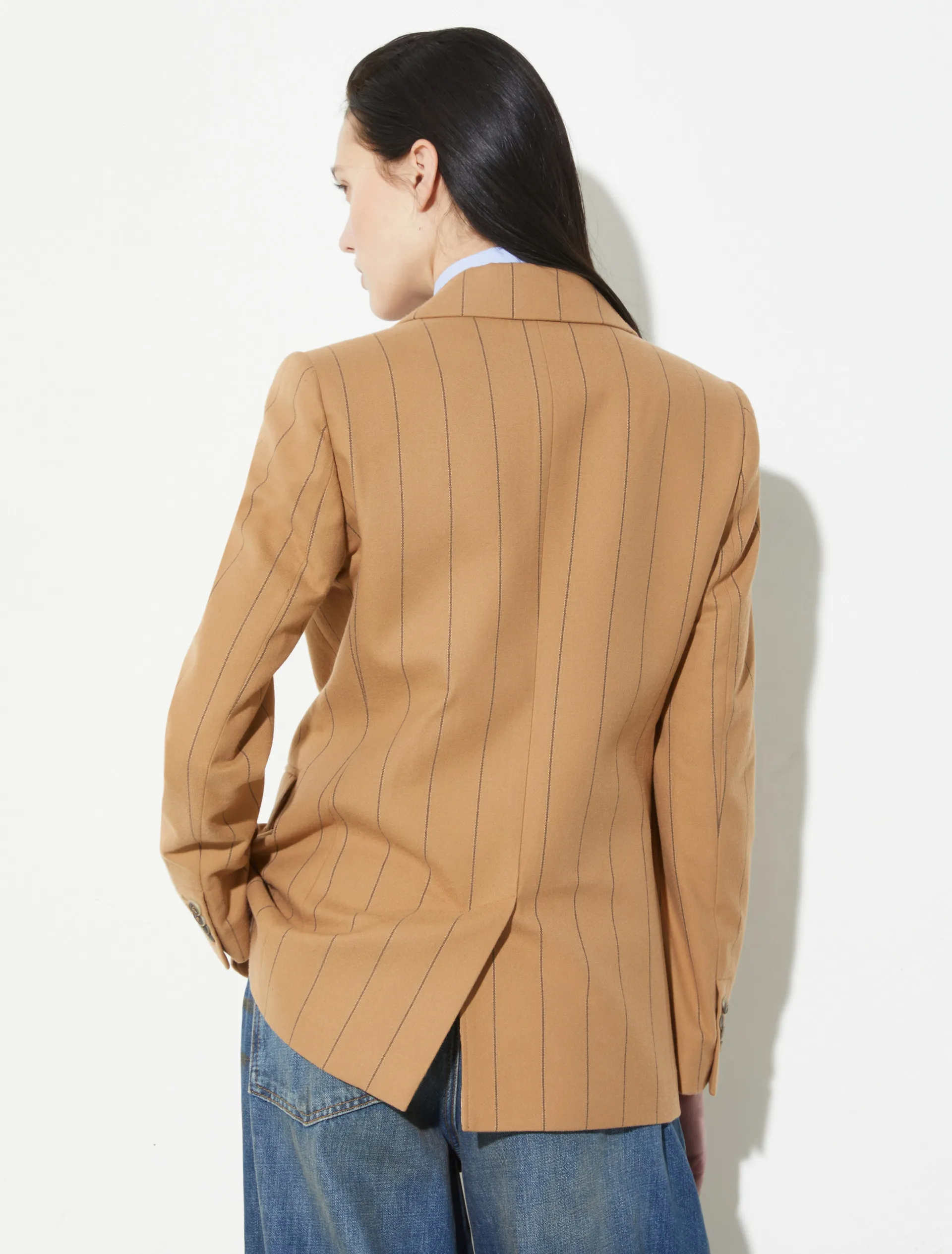 Жакет VELINA от MAX&Co — элегантная интерпретация классики. Приталенный однобортный крой из мягкой эластичной фланели подчёркивает фигуру и обеспечивает комфорт в движении. Аккуратные пуговицы на манжетах и разрез сзади добавляют изящные детали. В коллекции представлены брюки в тон.