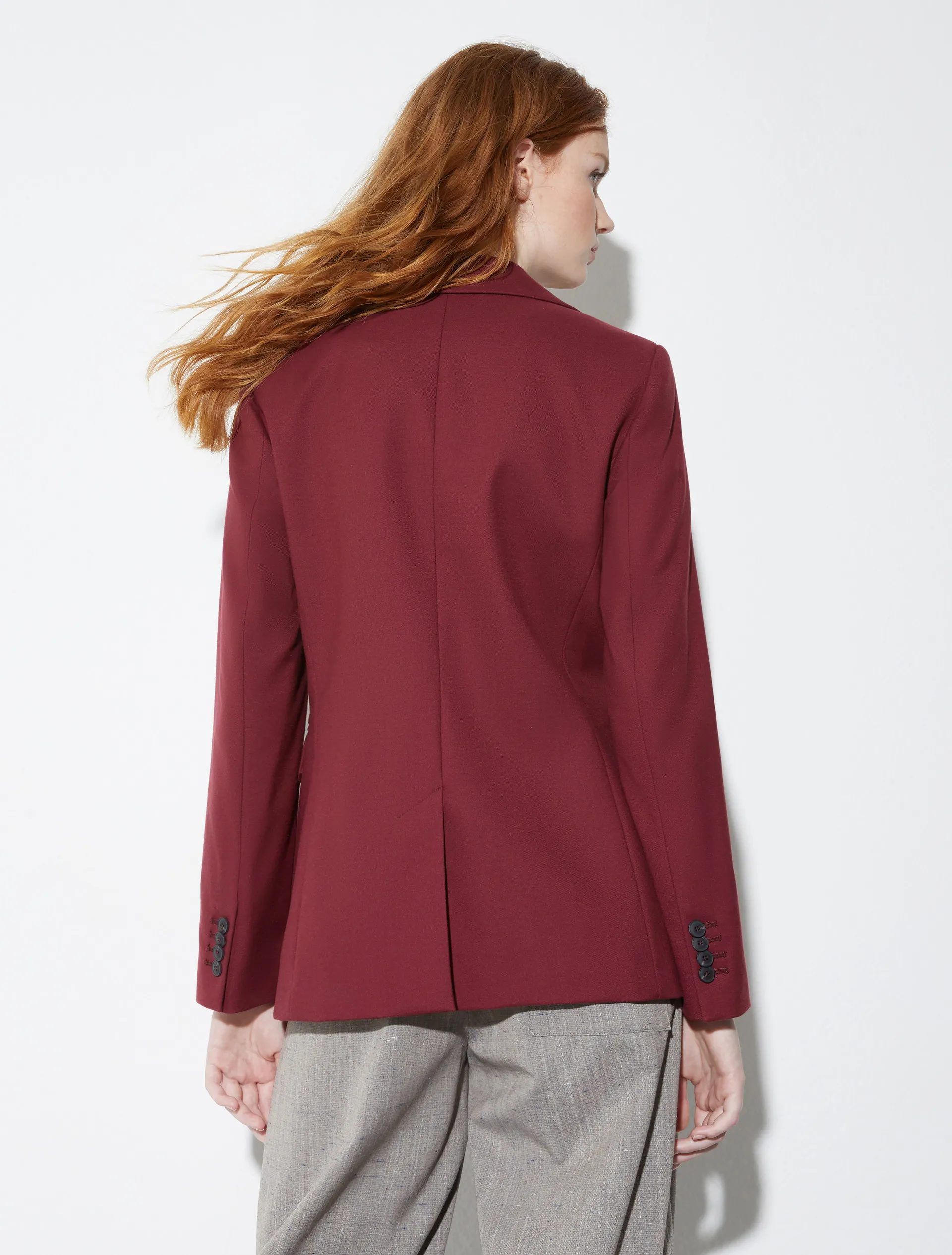 Жакет VELINA от MAX&Co — элегантная интерпретация классики. Приталенный однобортный крой из мягкой эластичной фланели подчёркивает фигуру и обеспечивает комфорт в движении. Аккуратные пуговицы на манжетах и разрез сзади добавляют изящные детали. В коллекции представлены брюки в тон.